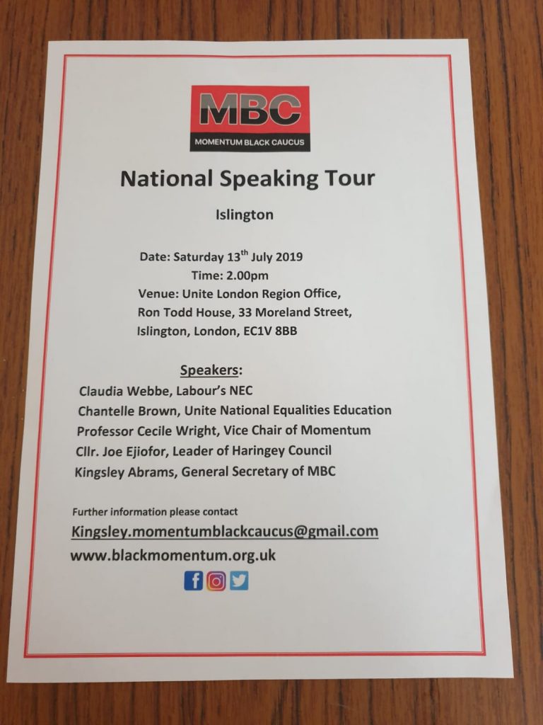 Momentum Black Caucus’s Speaking Tour arrives in Islington. Please join us for a lively discussion with excellent speakers